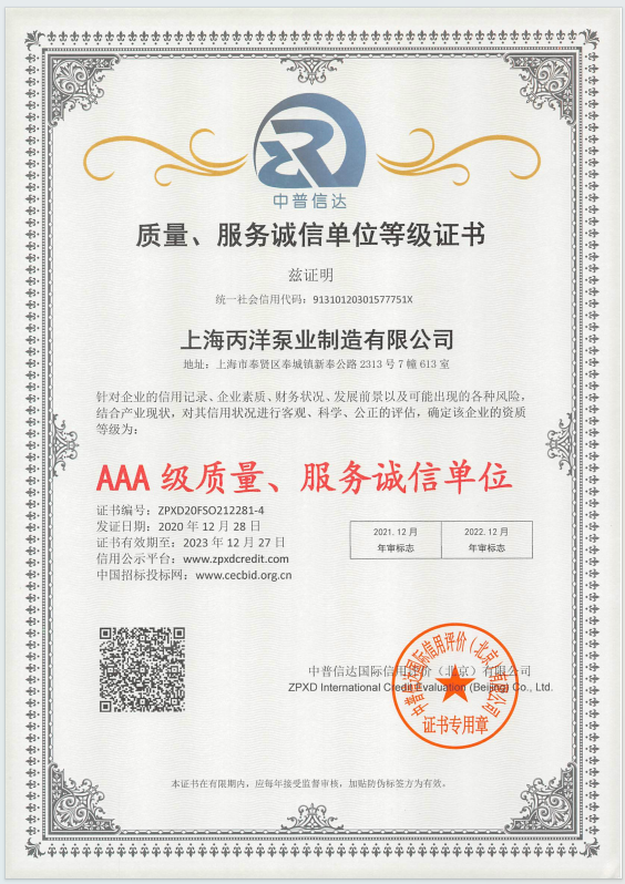 上海丙洋泵業生產設備先進、檢測手段完善,生產的產品種類繁多、規格齊全、廣泛應用于大型污水排放系統、田園灌溉、水利工程及高層建筑增壓送水、生活供水、化工、消防等領域,并為我國的給排水系統工程事業作出了貢獻。